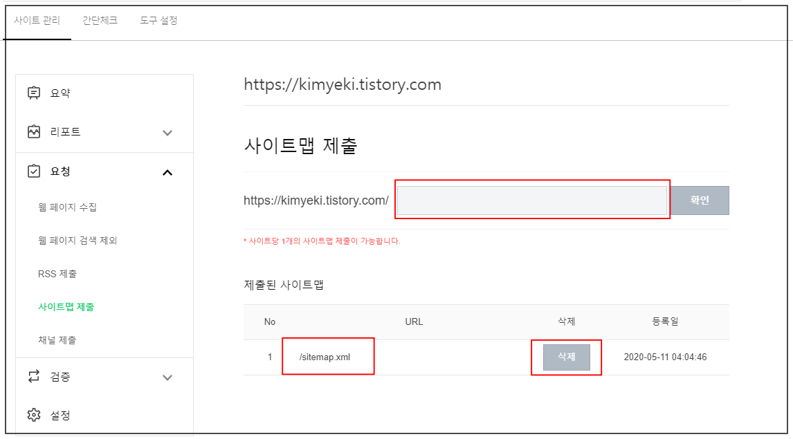 ① 본인 티스토리 관리자 페이지에서 사이트맵 주소 복사.