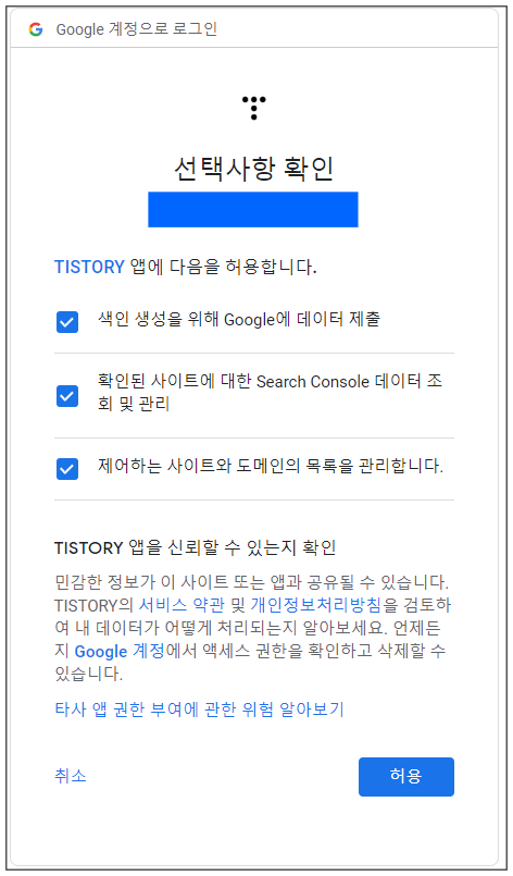 TISTORY 앱에서 다음을 허용하는 내용입니다. 허용을 눌러주세요.