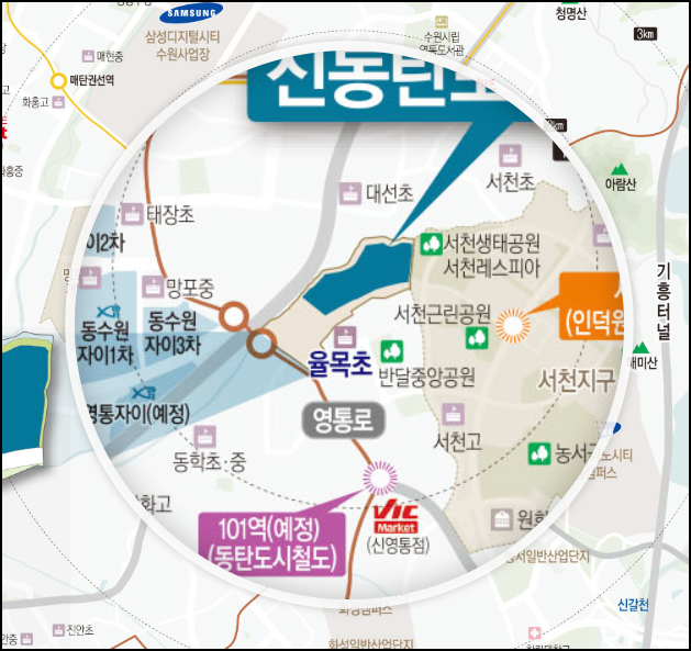 위치 상으로 보시면 분당선인 망포역과 영통역이 가까워 강남권, 분당, 수원까지 빠르게 이동 가능합니다.