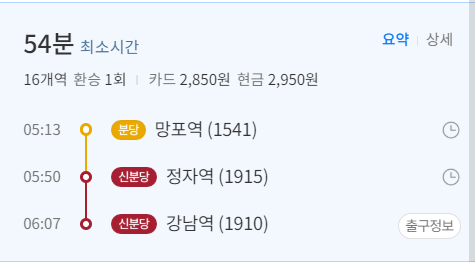 같은 분당선 라인으로 수원 9분, 선릉역 1시간 2분 소요됩니다.