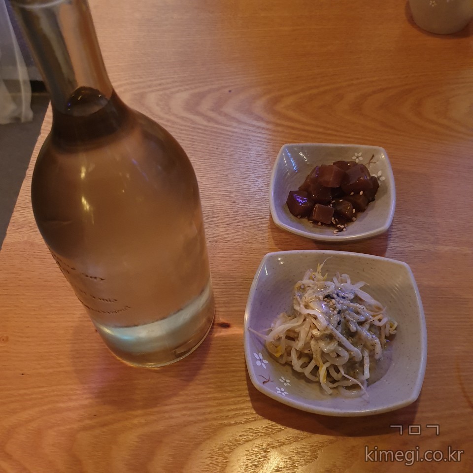 기본 안주로는 숙주 볶음과 묵 간장 조림(?)이 나왔습니다.