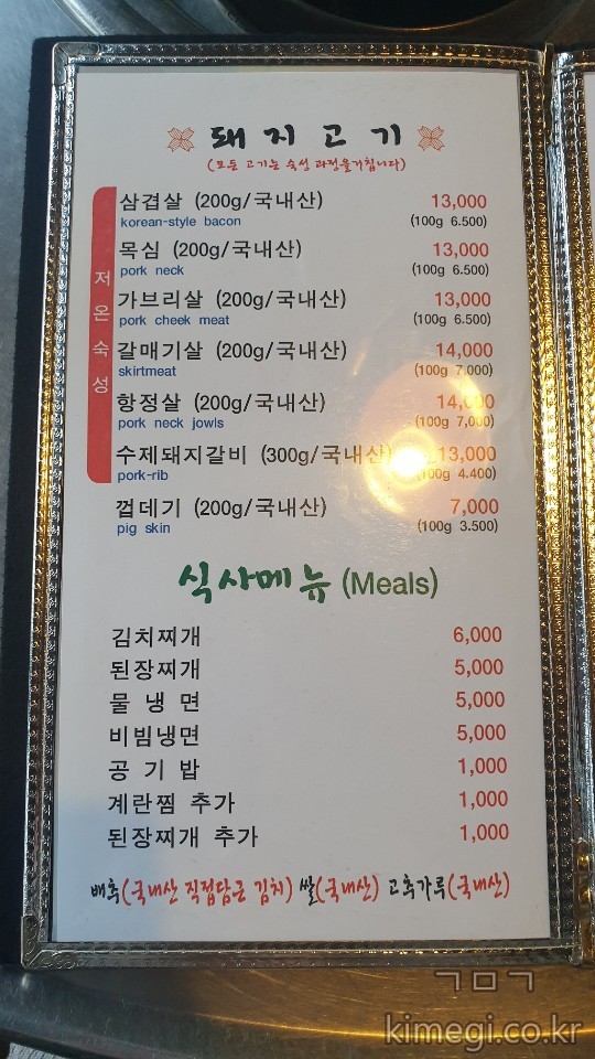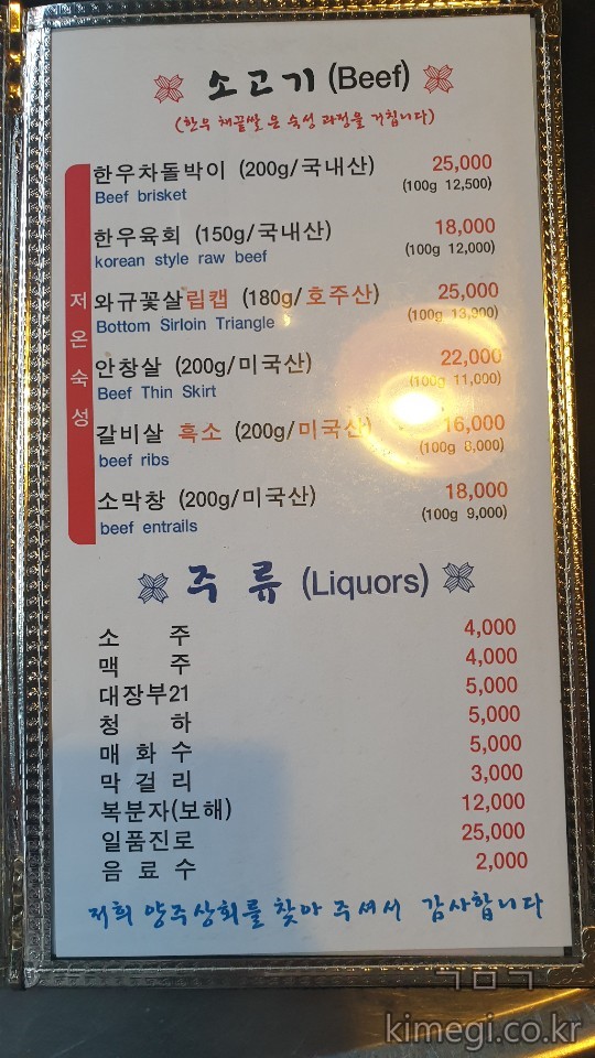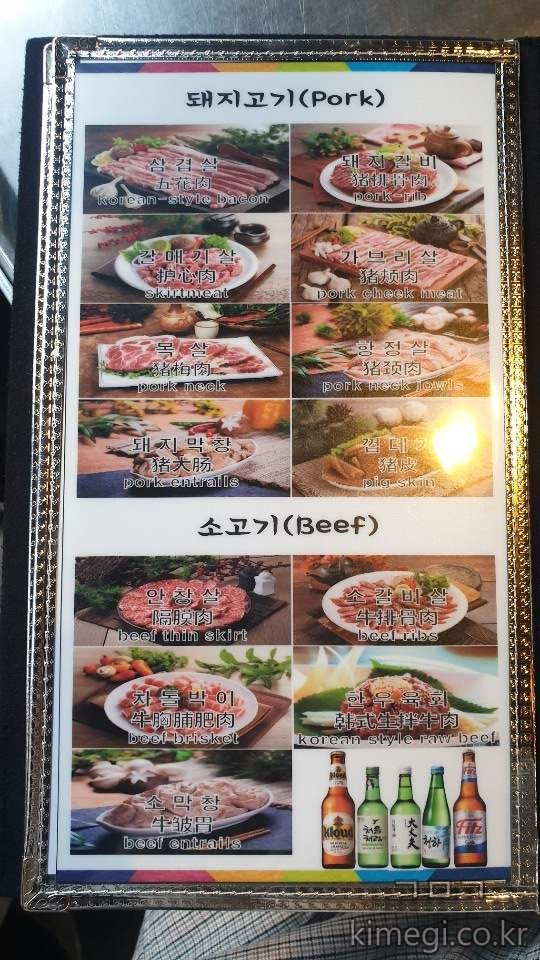 고기를 사진과 영어, 한자 메뉴판으로도 준비되어 있었습니다.