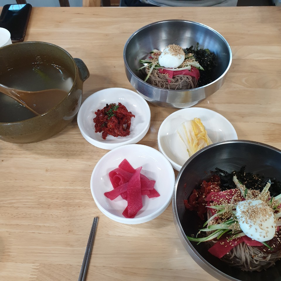 저희는 동치미 막국수와 비빔막국수를 주문했습니다.