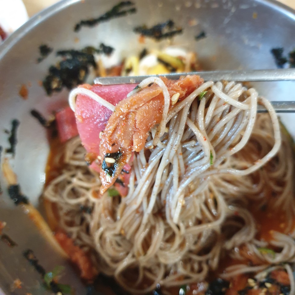 메밀면이 사실 밍밍한 맛이 조금 있죠.