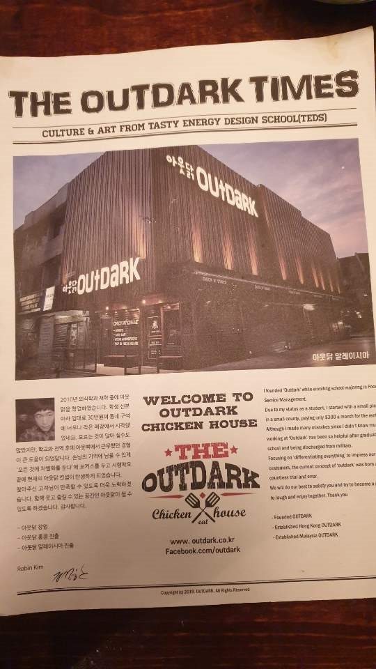 정말 예전에 ONDA라는 술집이 있던 위치에 아웃닭이 생겼습니다.