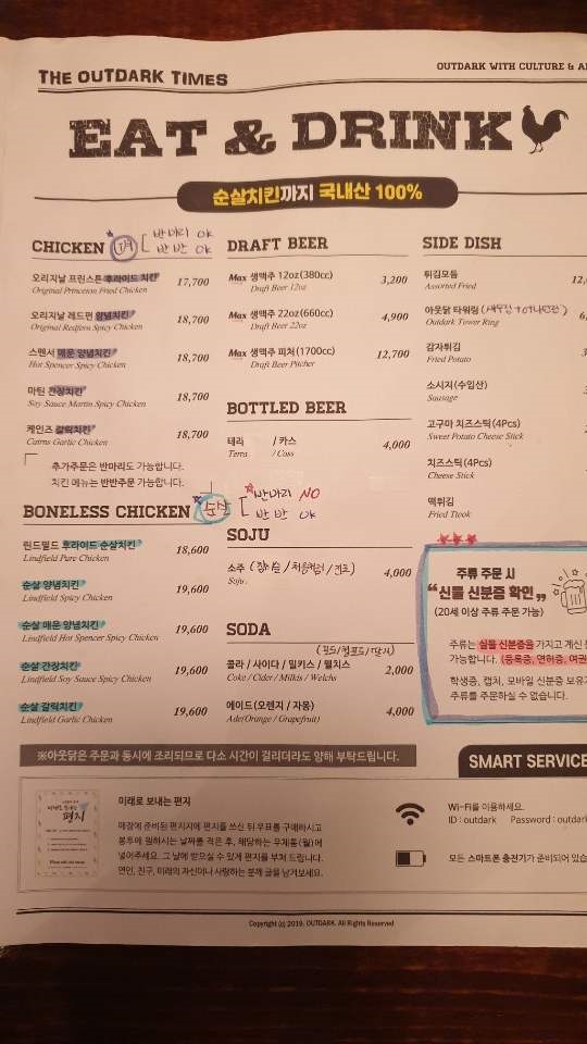 아웃닭은 신분증 필수입니다.