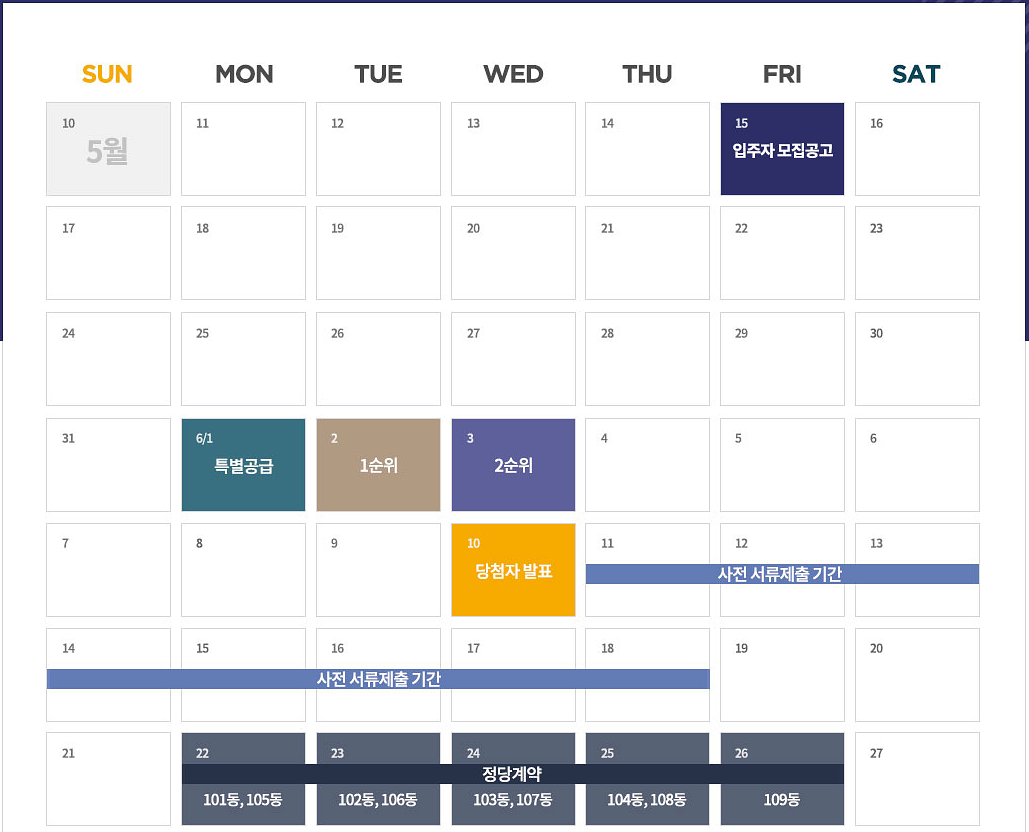 6월 1일부터 특별공급을 시작으로 6월 2일 1순위 청약 신청일입니다.