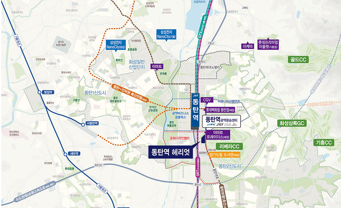 동탄역 도보가능한 거리에 위치하고 있어 수서까지 15분 걸리는 SRT를 편하게 이용할 수 있습니다.