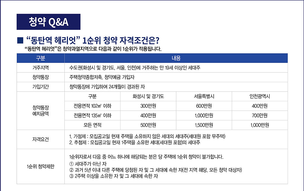 동탄역 헤리엇 1순위 청약 조건은 수도건에 거주하는 만 19세 이상 세대주 대상으로 청약 가입기간이 2년 지난 자를 대상으로 합니다.