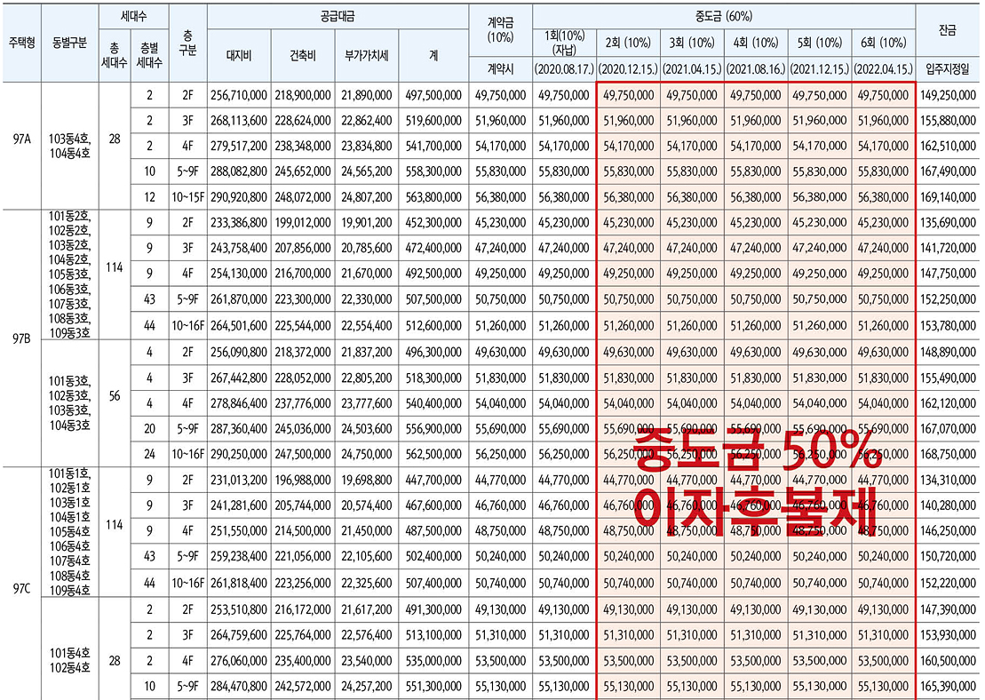 2년 뒤 잔금으로 1억 5천이 추가로 필요하며 중도금은 무이자가 아닙니다.