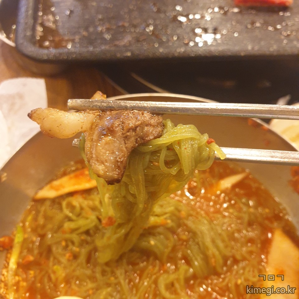 소고기 한판과 비빔냉면 1그릇, 공깃밥 1그릇, 소주 한 병 완벽히 클리어했습니다.