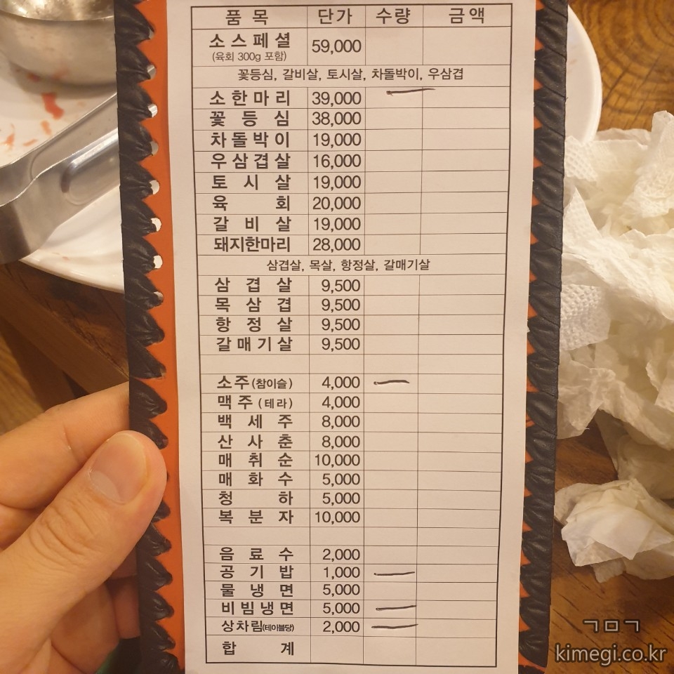 저희는 소 한 마리 39,000원 을 주문했습니다.