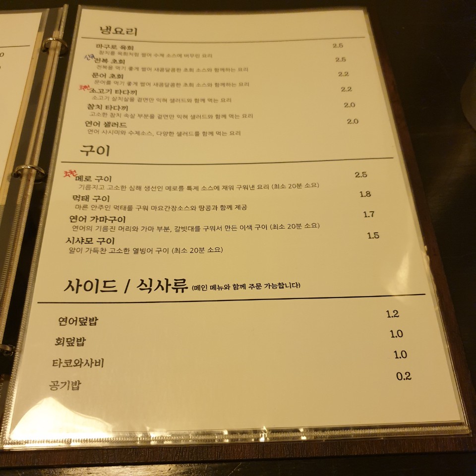 사시미도 있었는데 늦게 방문해서 마감을 했다고 했어요.