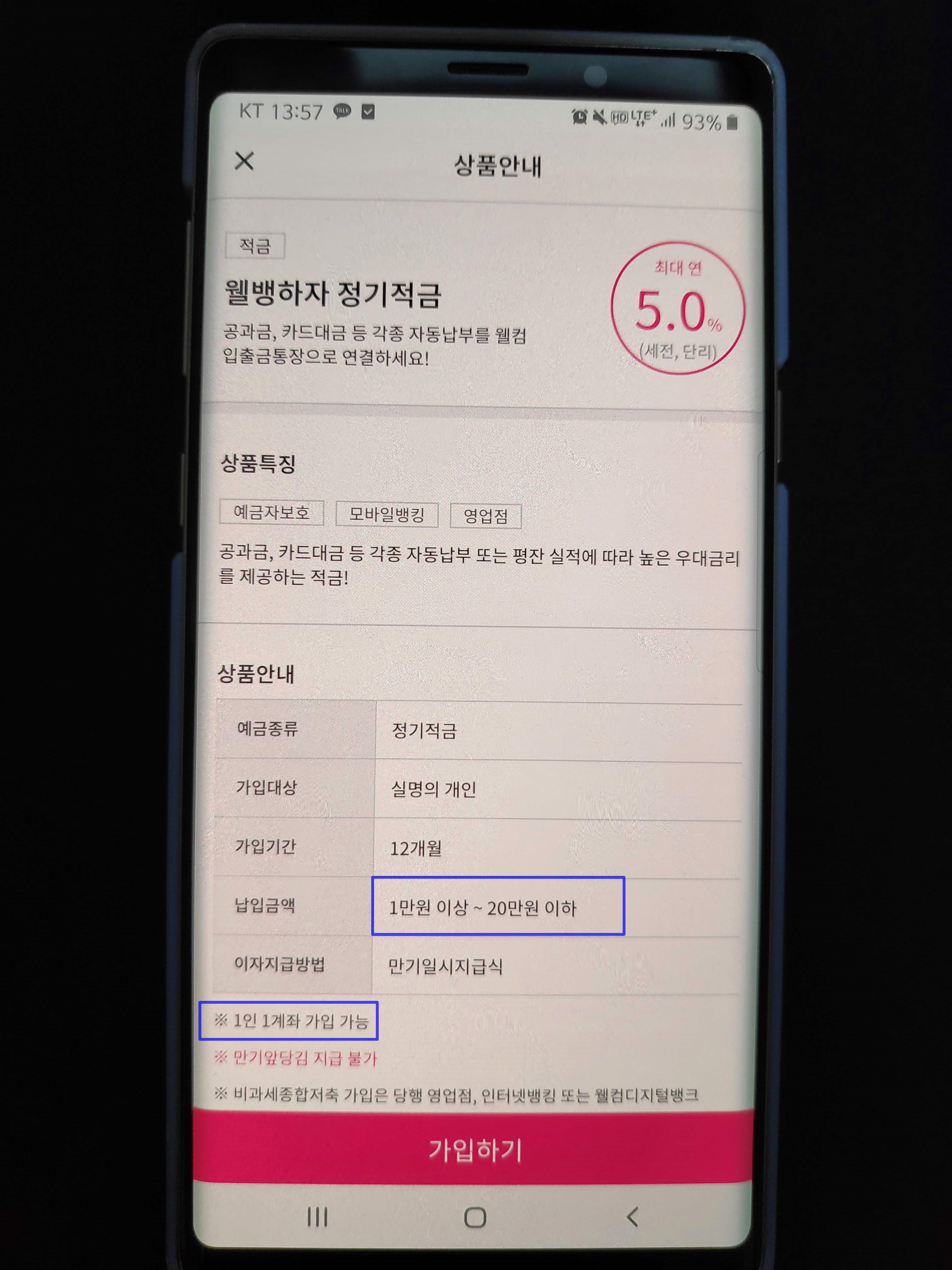 웰컴 디지털 뱅크 '웰뱅하자 정기적금'