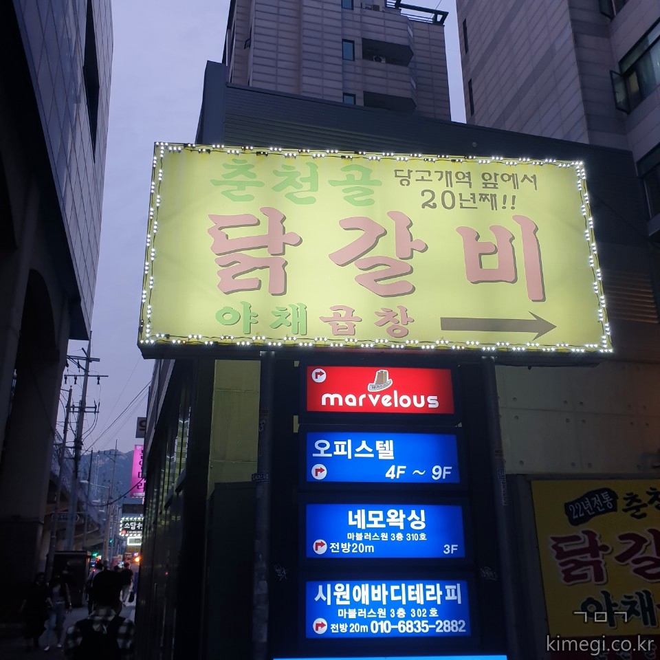 친구에게 빨리 나오라고 재촉하면서 춘천골 닭갈비 집에 도착했습니다.