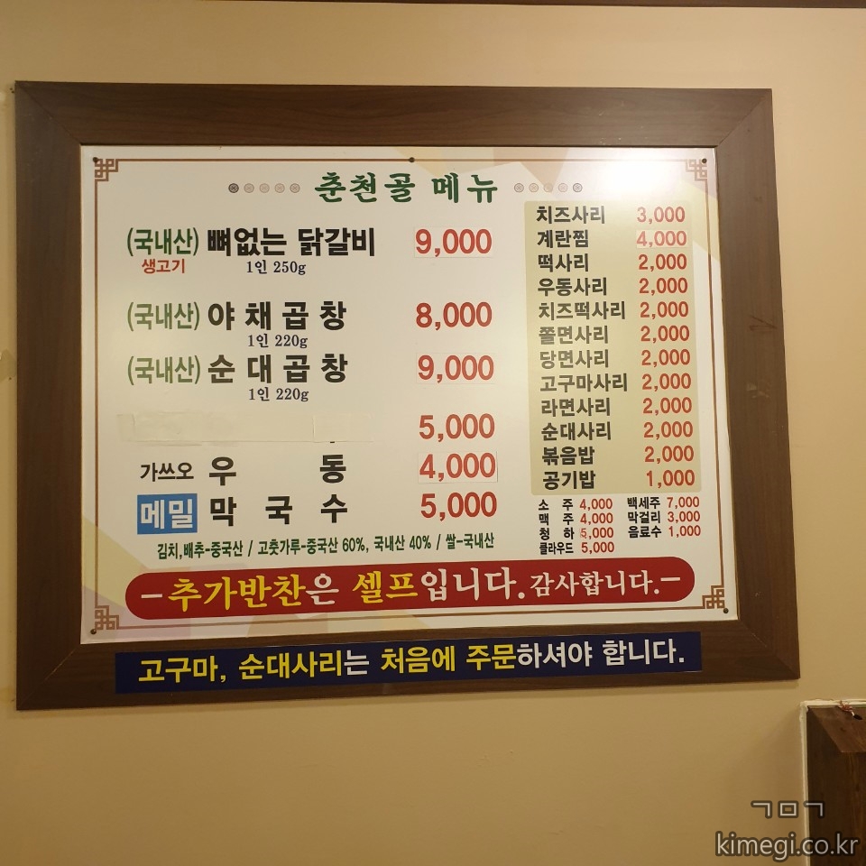 노원역 닭갈비 맛집 춘천골 메뉴판