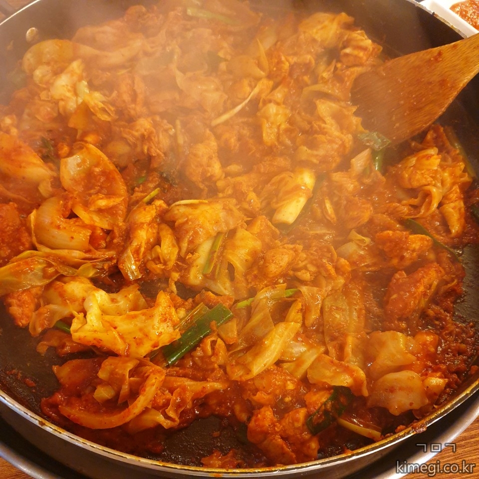 야채가 들어가서 볶은 닭갈비는 가끔씩 먹으면 너무 맛있습니다.