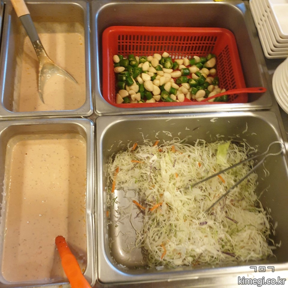 추가 반찬은 샐프인데 샐러드만 세 번 넘게 리필했어요.