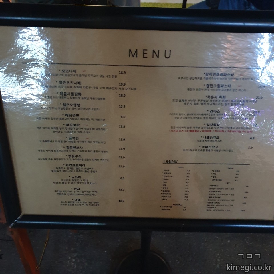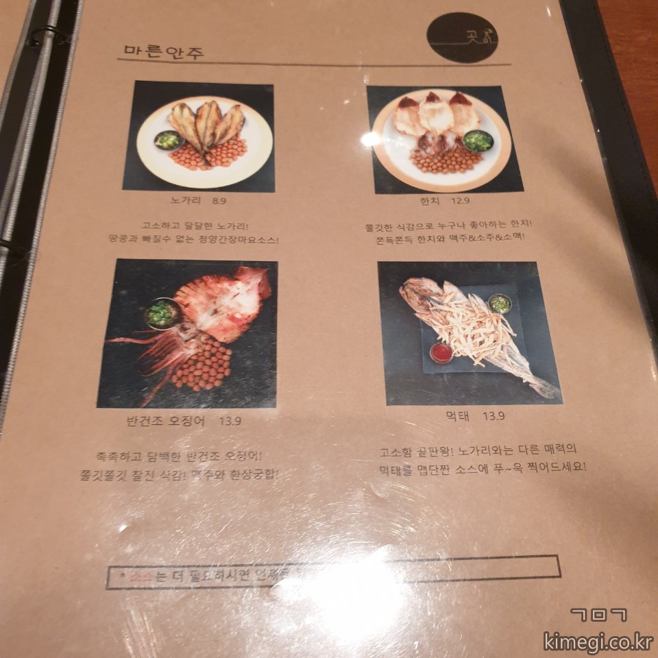 노원역 술집 '곳' 메뉴판