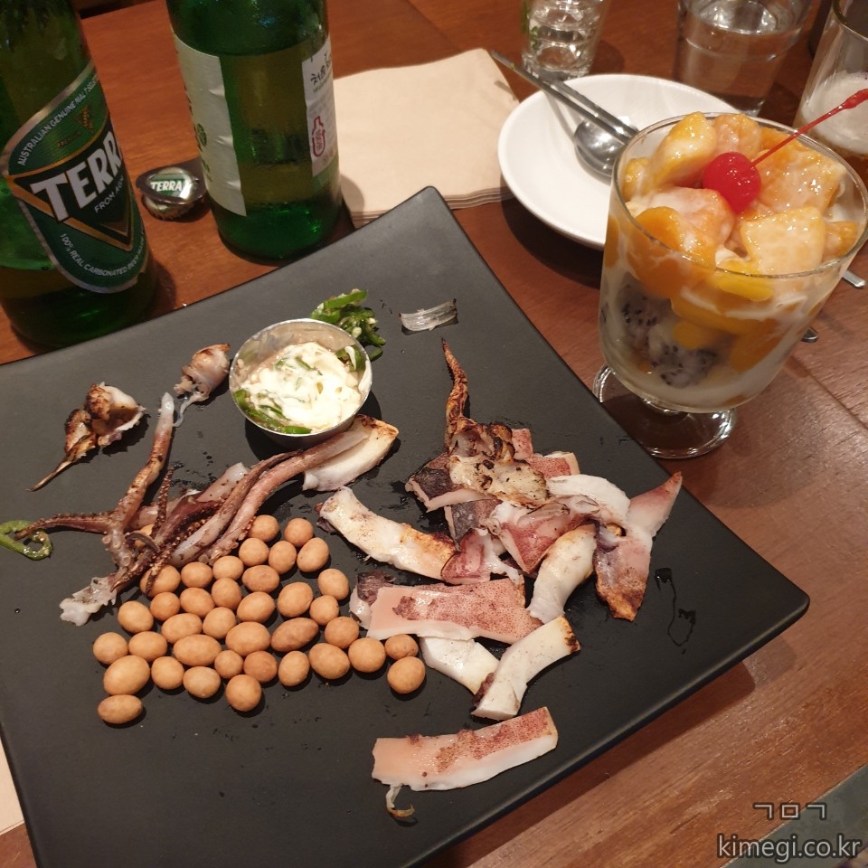 저번에 와서 알고 있었기 때문에 반건조 오징어만 주문하고 아이스망고를 서비스받았답니다.