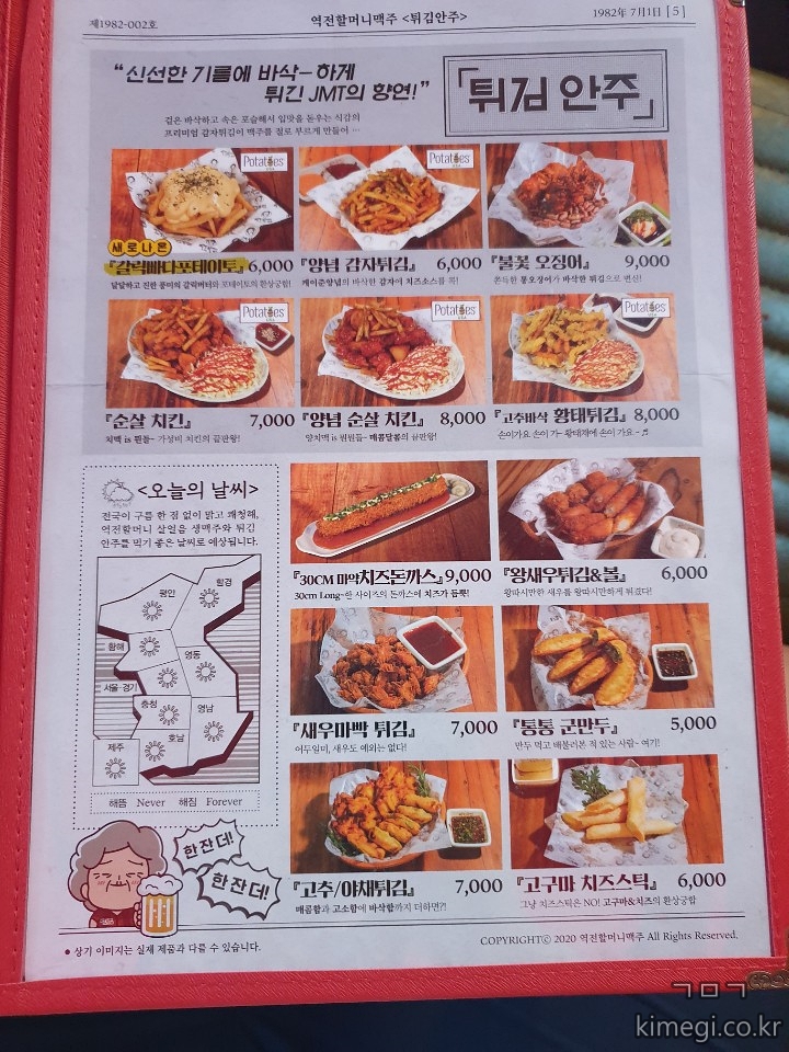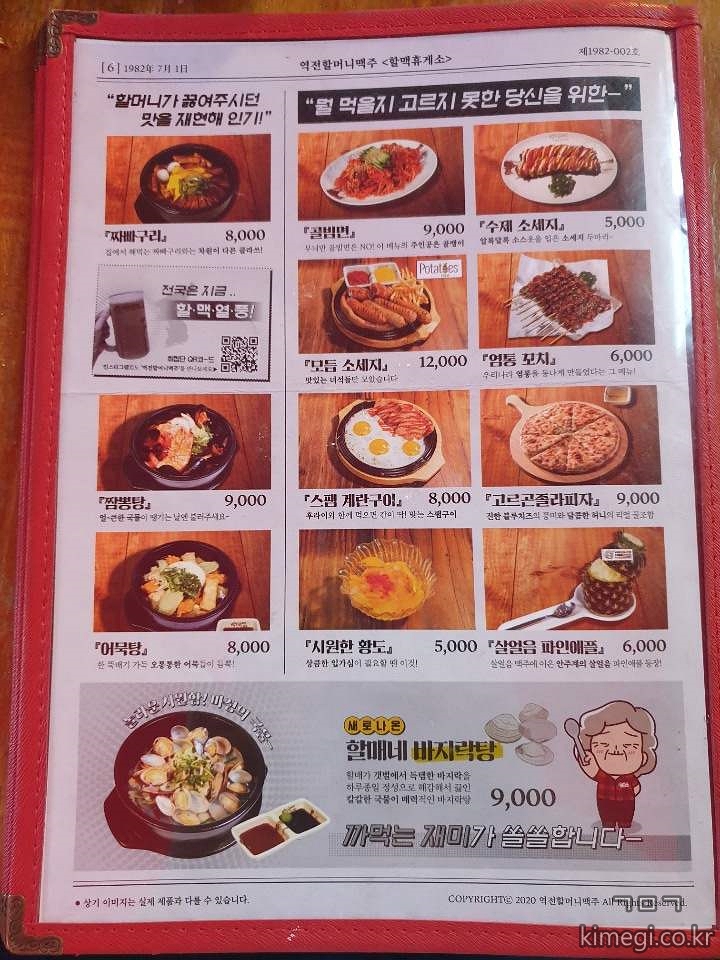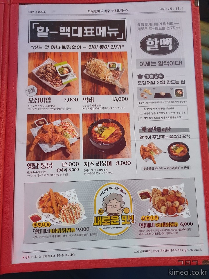 역전할머니맥주 메뉴판.