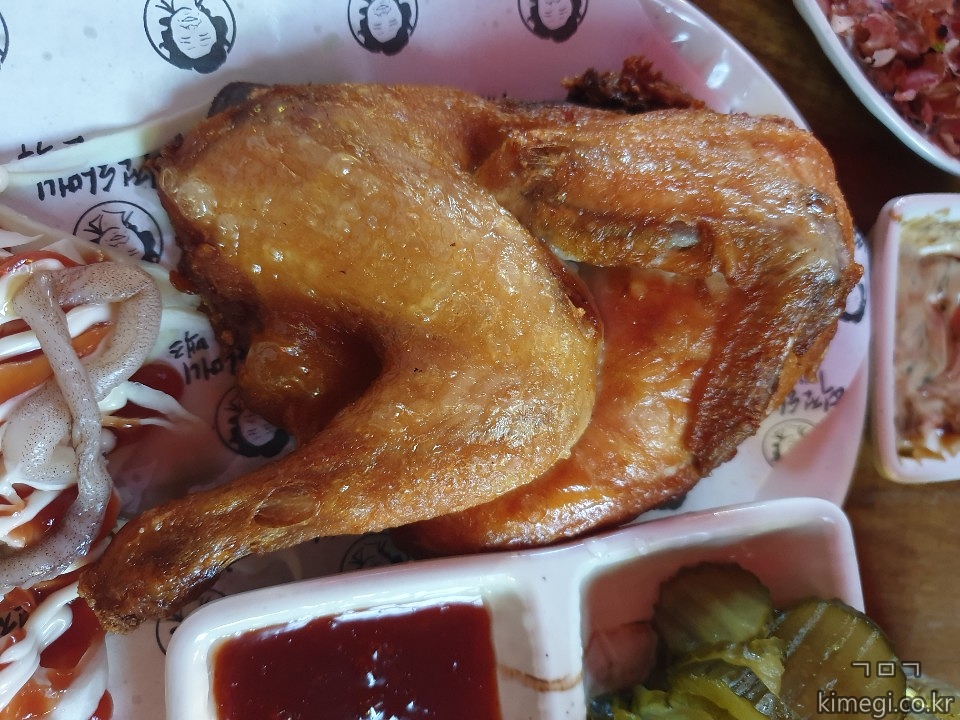 저렴한 안주 가격을 고수하는 할맥에서는 반마리의 통닭도 판매합니다.