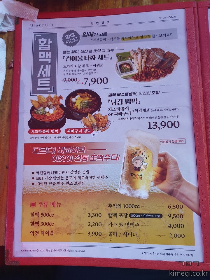 역전할머니맥주 메뉴판.