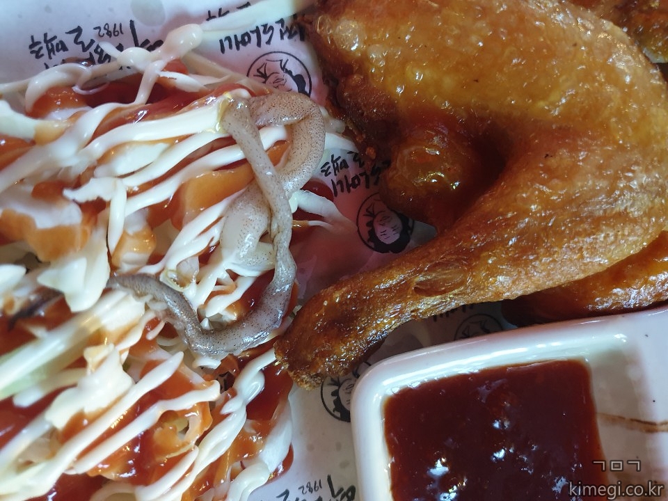 분명히 통닭을 주문했는데 샐러드에 생 오징어가 있습니다.