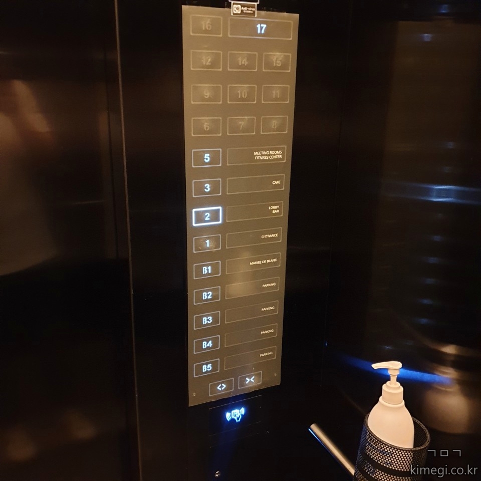 2층은 로비, 3층은 카페, 5층은 헬스장과 미팅룸이 위치해 있습니다.
