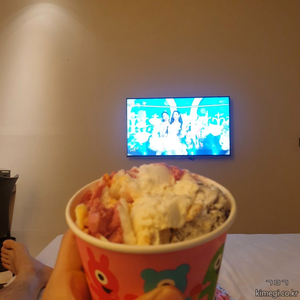 여자 친구가 사 온 아이스크림을 먹으면서 걸그룹을 보고 있자니 너무 행복했습니다.