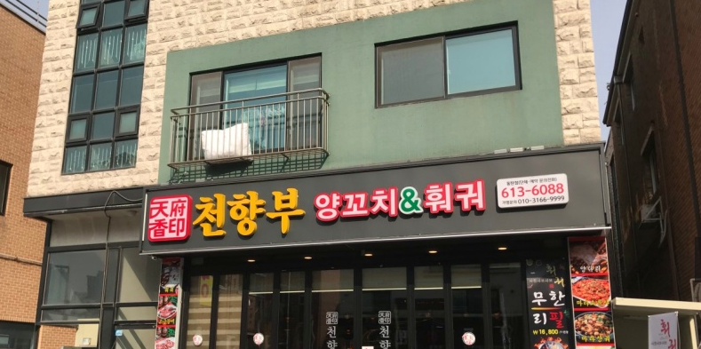 동탄 삼성전자 앞 개나리 공원에 위치한 천향부는 양꼬치와 훠궈 전문점입니다.