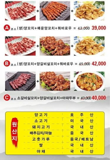 퍼온 메뉴판은 배달 용인가 봅니다.