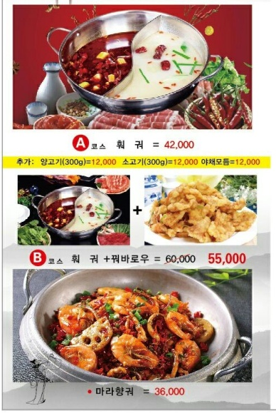 훠궈 전문점답게 훠궈 세트도 준비되어 있어요.