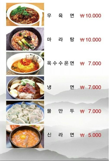 퍼온 메뉴판은 배달 용인가 봅니다.