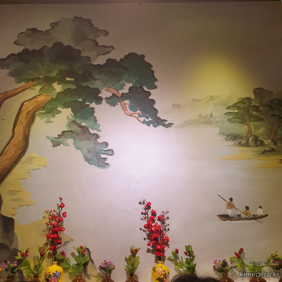중국풍 그림과 중국 술병들로 내부를 꾸며놨어요.