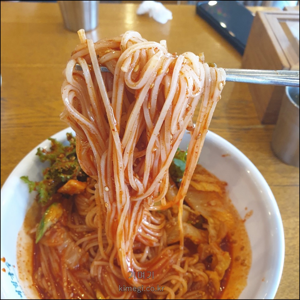 넓은 면이 비빔국수의 양념을 잘 흡수해서 정말 맛있습니다.