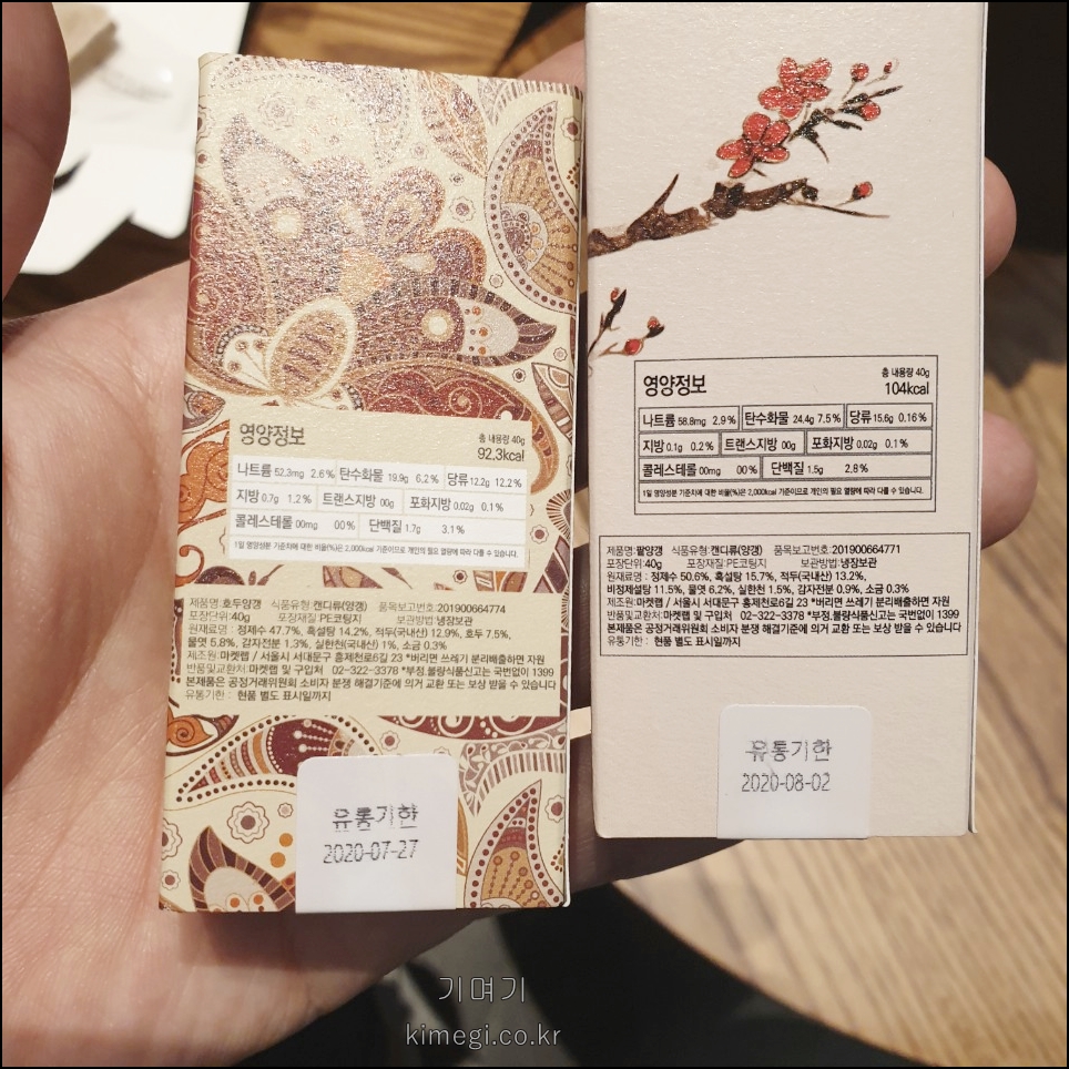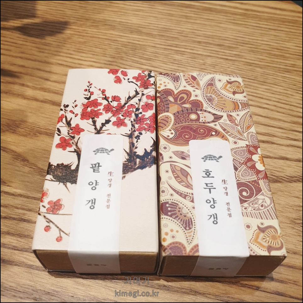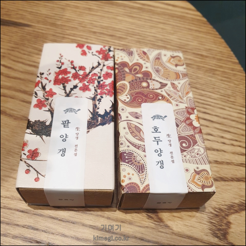 부모님과 만난 후 집에 와서 양갱을 확인해 봤어요.