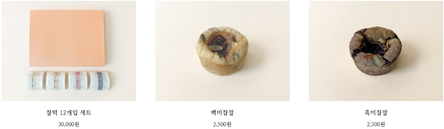소보로, 백미, 흑미, 현미 찰떡이 있습니다.
