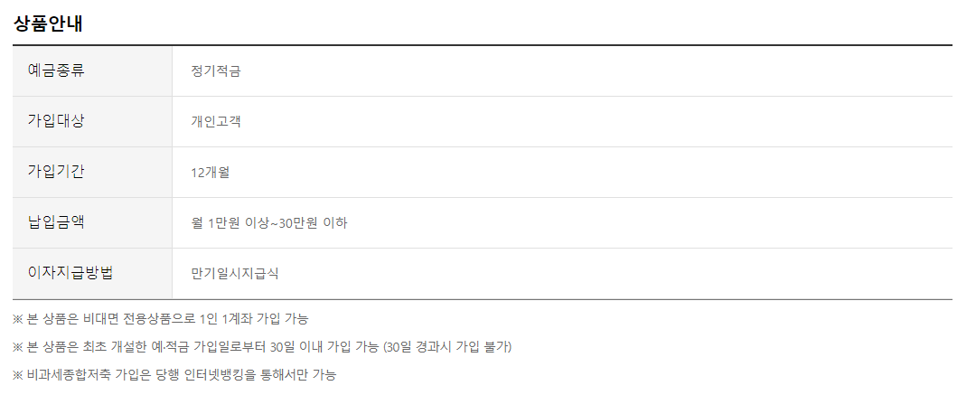 해당 상품은 1년 가입 가능 상품으로 최대 30만 원까지만 가입 가능합니다.