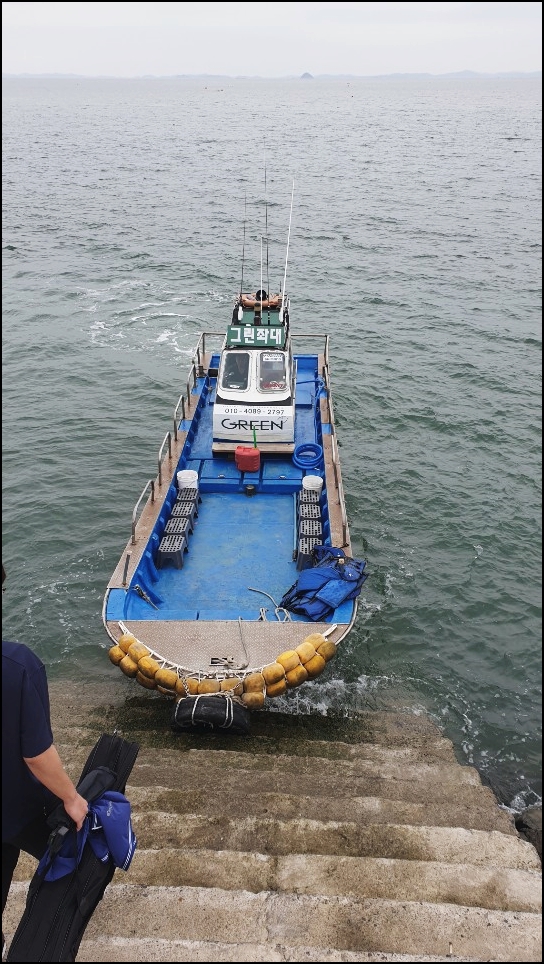 예약을 하고 장고항으로 가면 이렇게 배가 한 척 대기하고 있습니다.