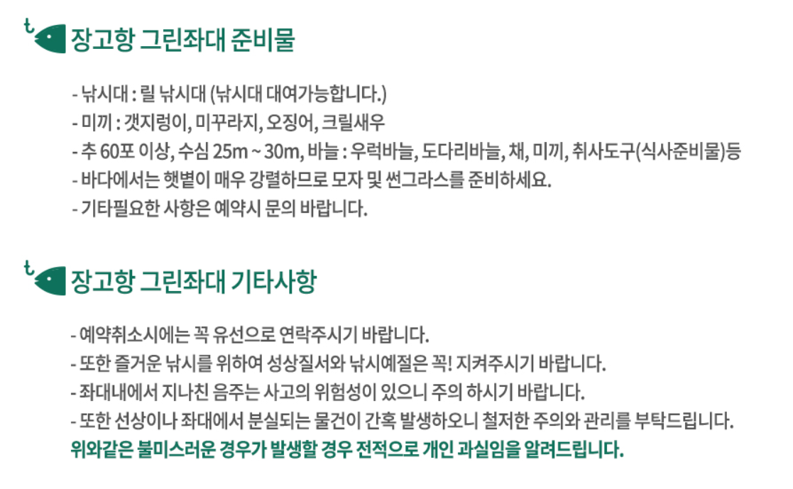 장고항 그린좌대 준비물