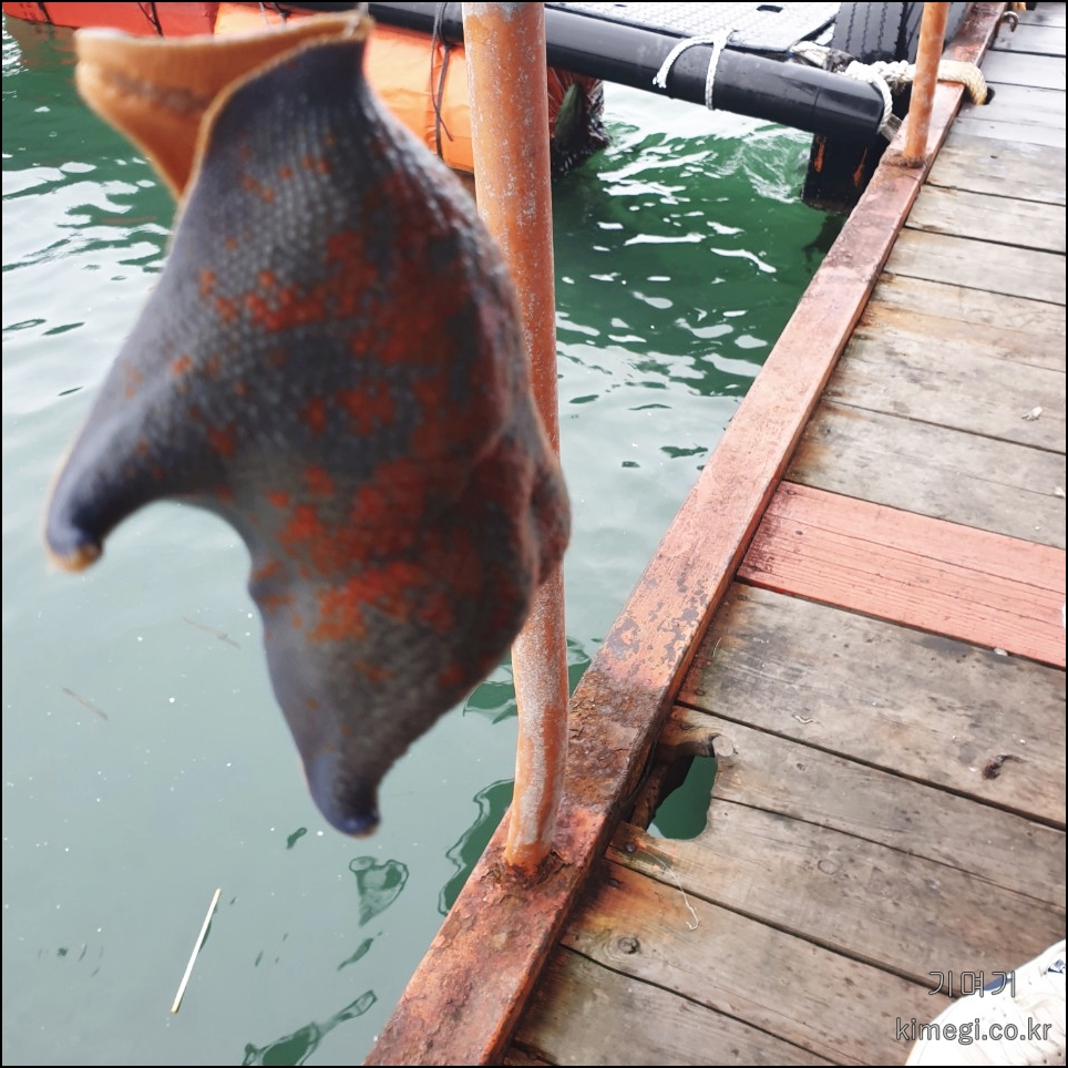 머리 때고 껍질 벗겨서 물고기가 먹기 좋게 바늘에 꽂으라고 친절하게 알려주셨어요.