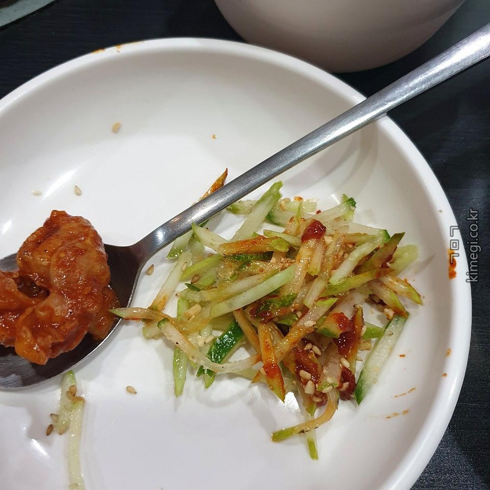 오이를 다 빼내고 육수를 조금 부어서 비볐습니다.