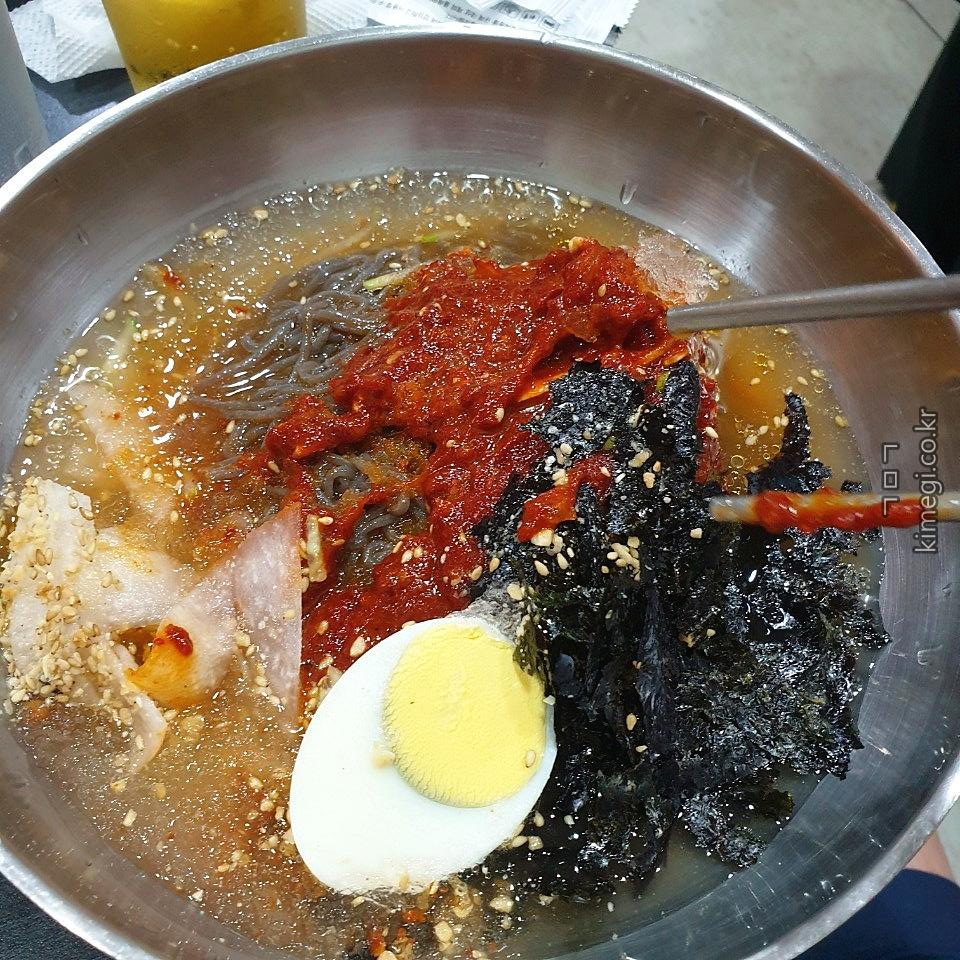 비빔에 육수를 부어서 비벼야 진짜 맛있습니다.