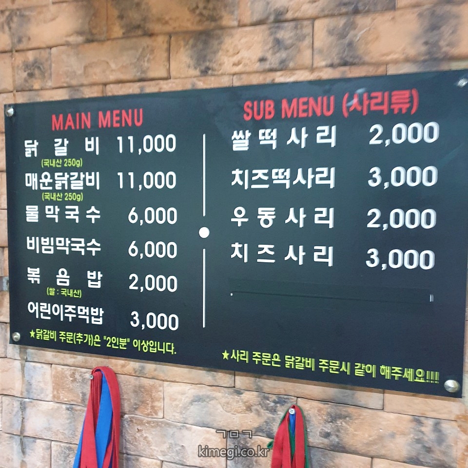 하계역 맛집 춘천왕닭갈비 메뉴판입니다.