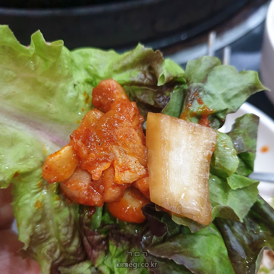 그냥 먹어도 맛있고 이렇게 쌈을 싸 먹어도 너무 맛있었어요.