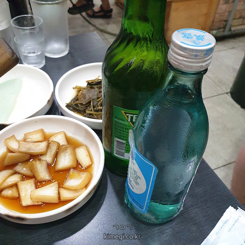 익을 때까지 밑반찬과 소맥을 마시면서 기다렸습니다.