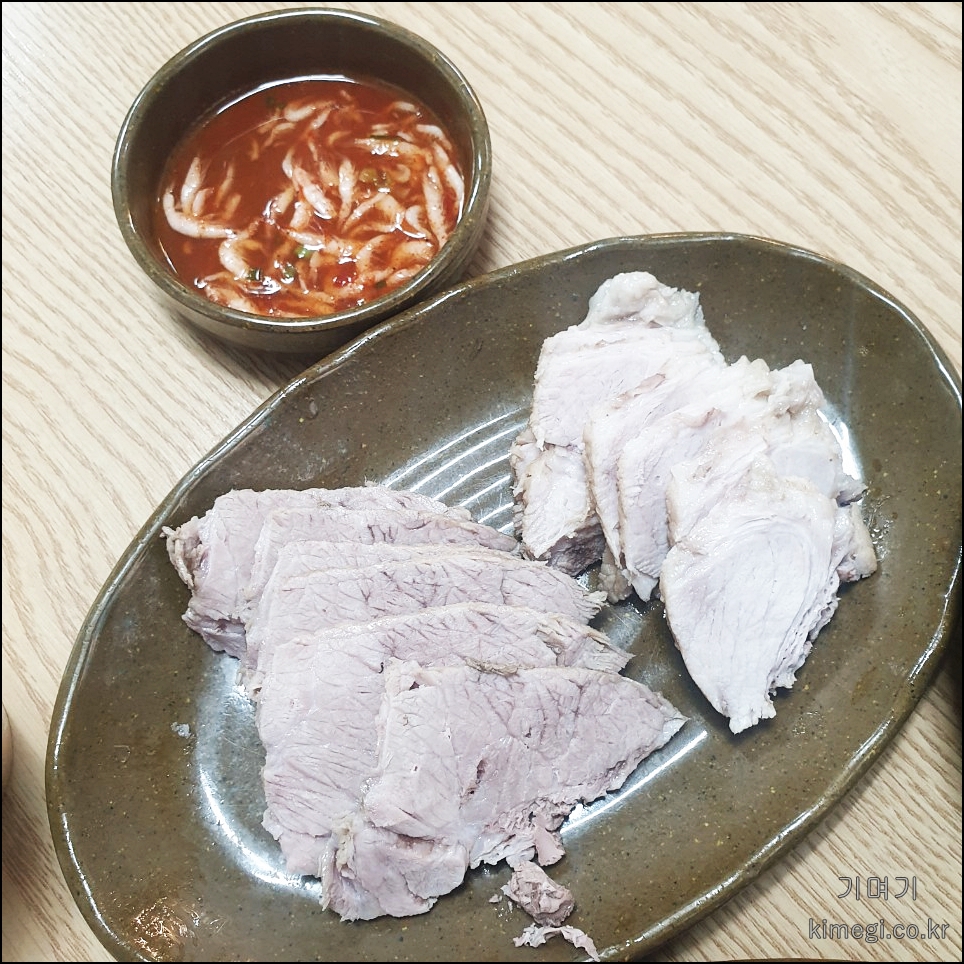 가격도 저렴해요. 1인분에 7,000원, 수육 10,000원, 고기만두 5,000원입니다.