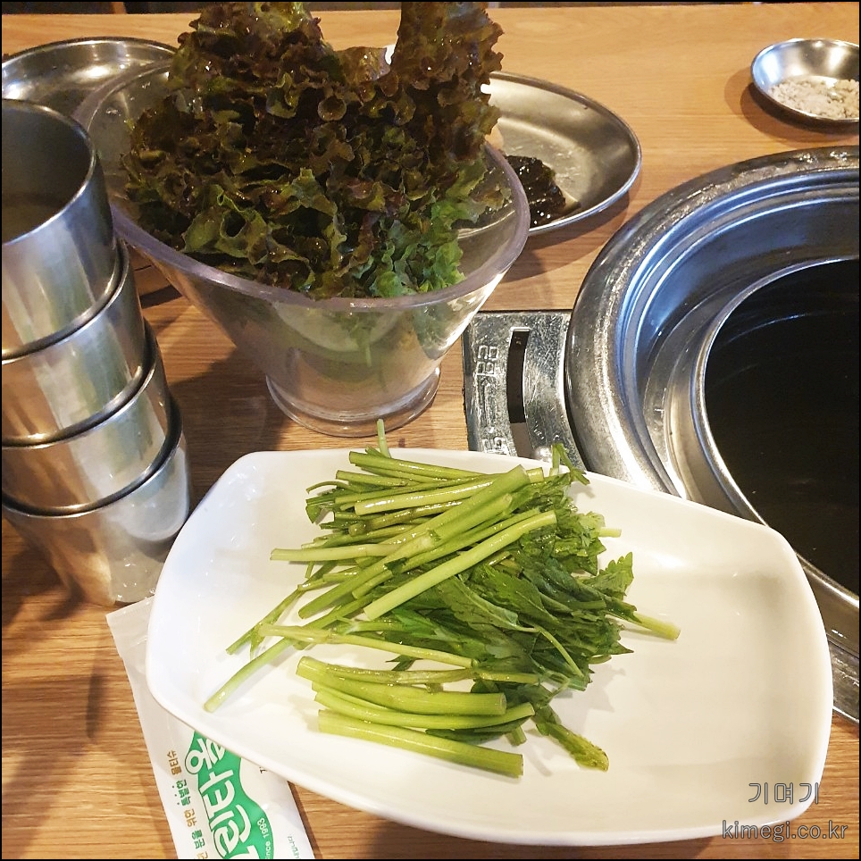 미나리를 같이 구워 먹으면 정말 맛있습니다.