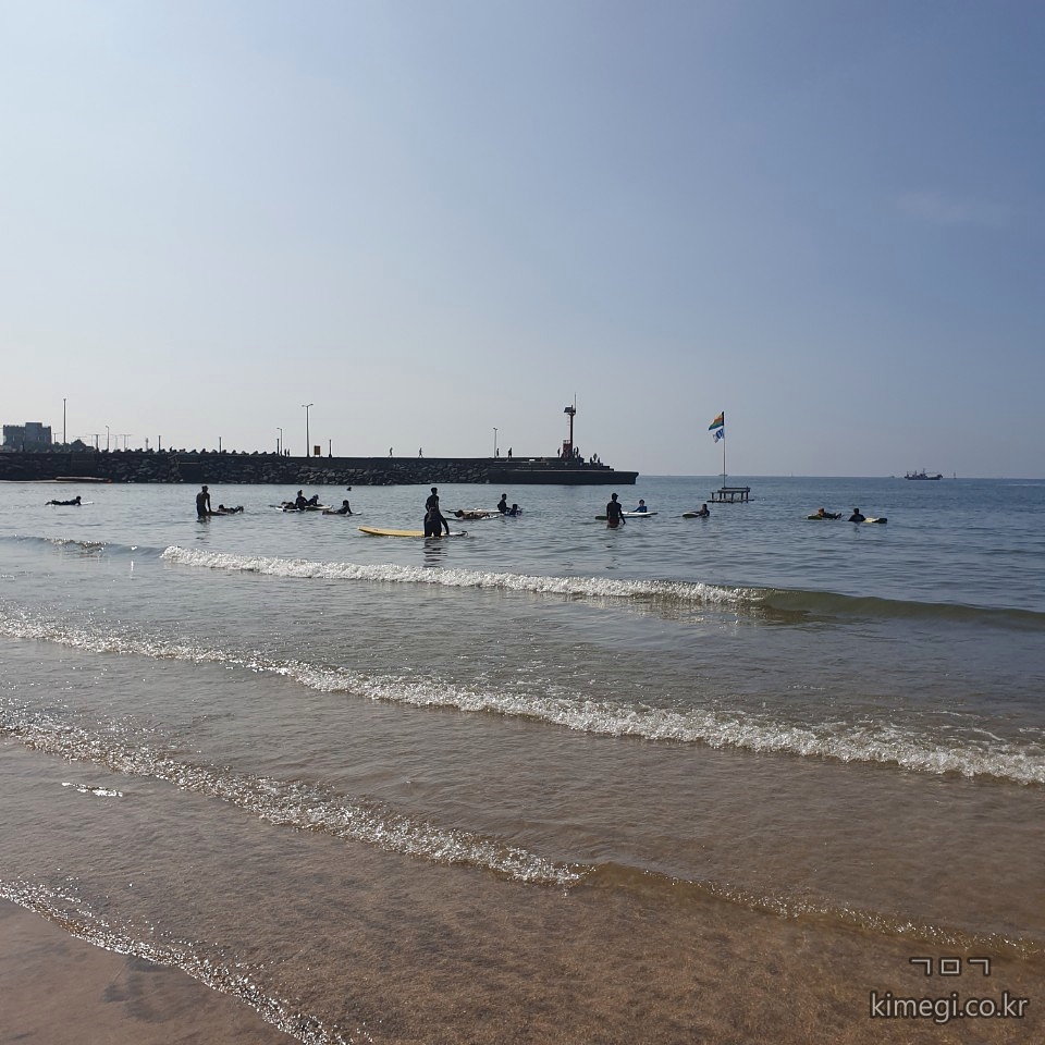 해수욕장 사이드에서는 서핑을 하는 사람들이 있었어요.